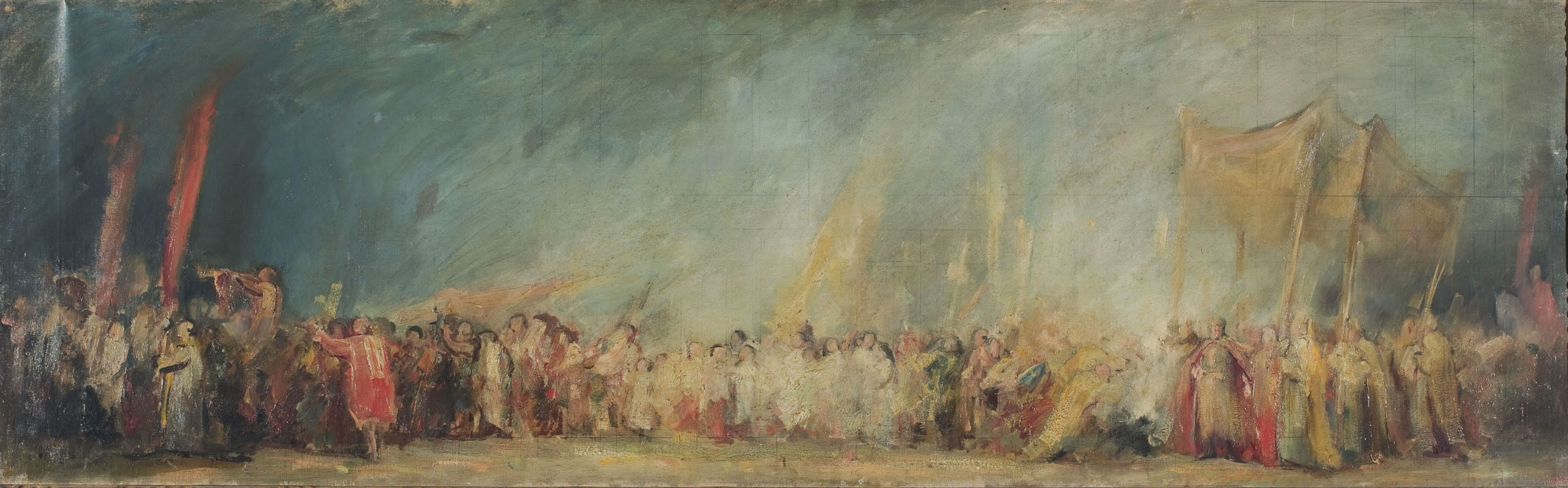 In the Board Room of the Administration Block of Hospital de Sant Pau there is another later painting by Aleix Clapés in which the artist returns to this subject: it is the Burial of Saint Eulàlia, 1921.